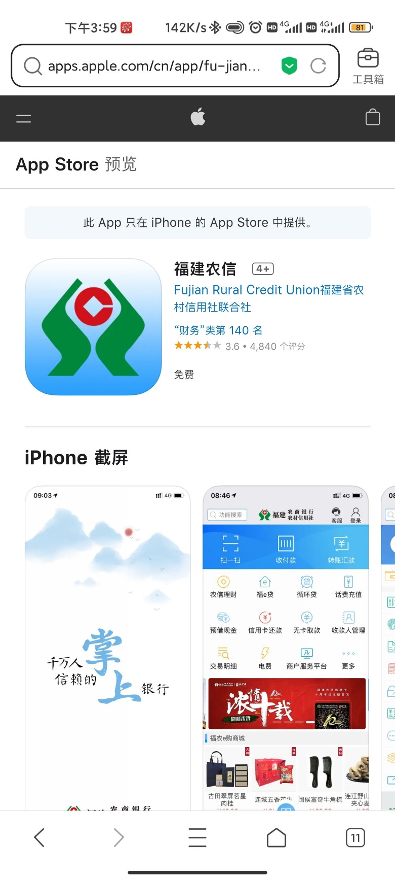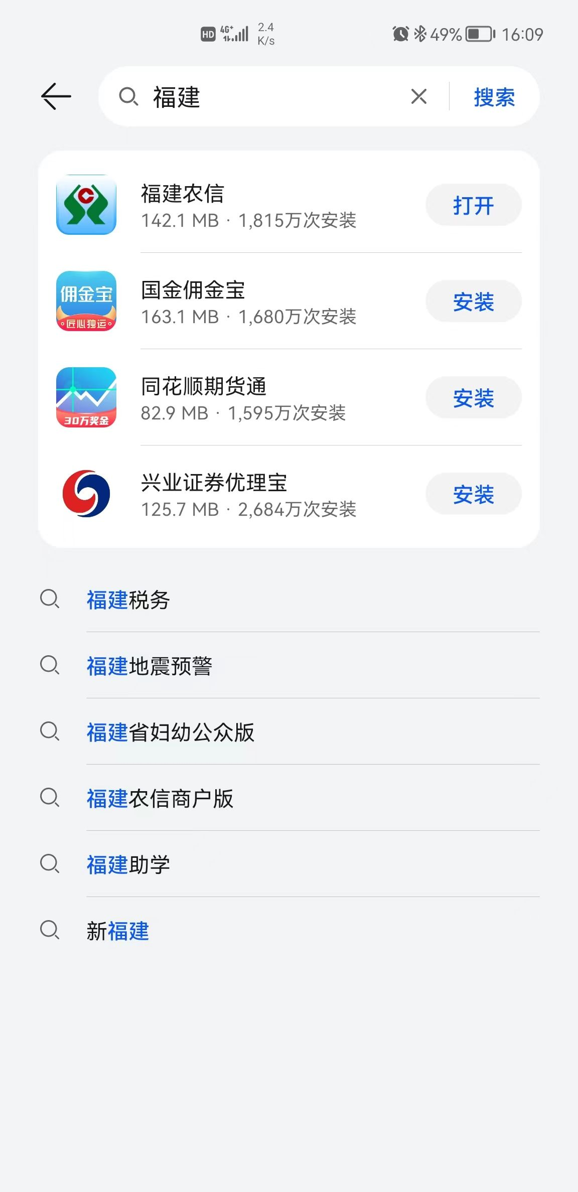 第一步:華為、蘋果、oppo、vivo等手機品牌用戶,可訪問手機自帶的應用市場,搜索“福建農信”。